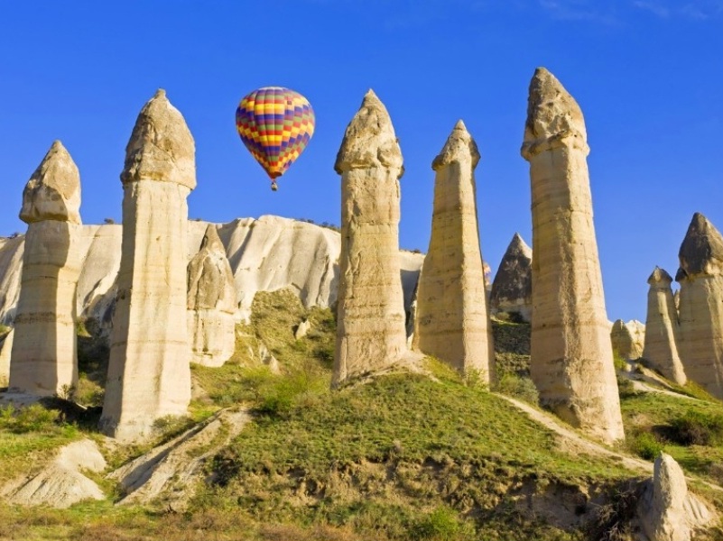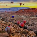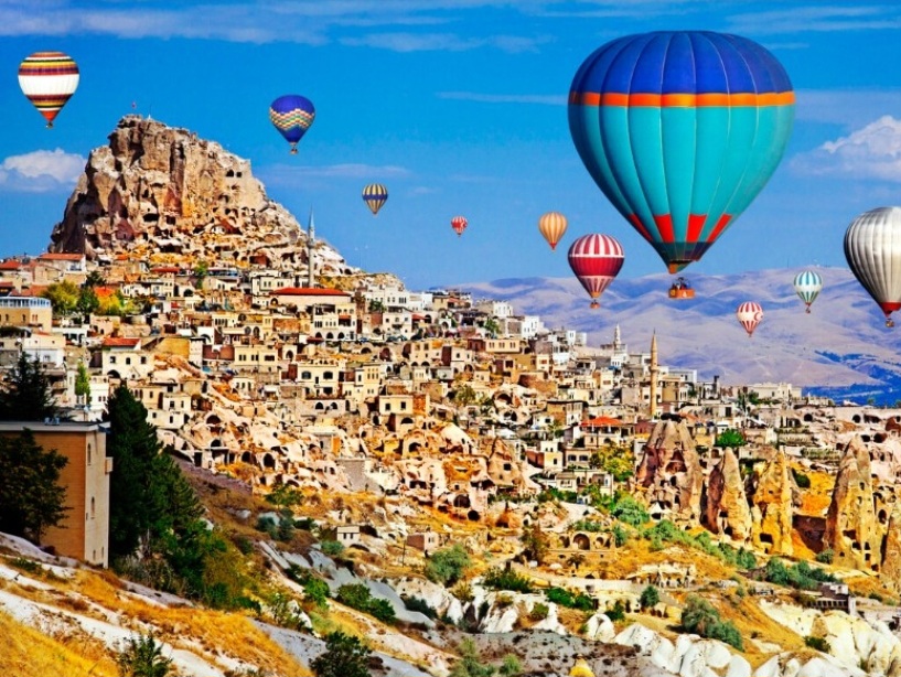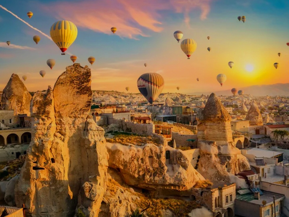 Odkryj magiczną Kapadocję – krainę niezwykłych dolin, tajemniczych formacji skalnych i niezapomnianych widoków, która kusi swoją niezwykłą urodą i bogatą historią. W DOLINIE MIŁOŚCI, znanej również jako DOLINA GÖREME, wśród wyjątkowych formacji skalnych, które wyglądają jak kolumny piekielne, ukryte są starożytne domy i kościoły wykute w skałach, tworząc spektakularny krajobraz, którego nie sposób zapomnieć. Spacerując przez DOLINĘ RÓŻ, czyli DOLINĘ KIZILÇUKUR, podziwiaj czerwone odcienie skał, które malują niepowtarzalne obrazy natury, uchylając rąbka tajemnicy starożytnych cywilizacji. W DOLINIE BIAŁEJ GOŁĘBICY, zwaną także DOLINĄ BEYDAĞLARI, białe formacje skalne kontrastują z błękitem nieba, tworząc bajeczne widoki, a liczne gołębniki wydrążone w skałach przypominają o dawnych czasach, kiedy to ludzie i zwierzęta szukali tu schronienia. DOLINA ROZDZIELAJĄCA, znana jako DOLINA DEVRENT, zaskakuje swoimi niezwykłymi formacjami skalnymi, które przybierają kształty zwierząt i postaci ludzkich, niczym dzieło sztuki stworzone przez samą naturę. W DOLINIE UŁAŃSKIEJ, czyli DOLINIE PAŞABAĞ, odkryj wysokie stożki i kolumny skalne, zwane „kominkami piekielnymi”, które są symbolem tego wyjątkowego regionu, zniewalając turystów swoją surrealistyczną urodą. KAPADOCJA to nie tylko miejsce niezwykłych krajobrazów i historii, ale także przestrzeń, w której powstawały legendarnie piękne filmy, takie jak „Kapadocja: Zaklęta kraina”, „Słońce nad Doliną Miłości”, oraz „Balony nad Kapadocją”. To dodaje temu miejscu jeszcze większego uroku. Połączenie niezwykłych widoków, tajemniczej historii i filmowych wątków sprawia, że podróż do Kapadocji staje się niezapomnianym doświadczeniem życiowym.